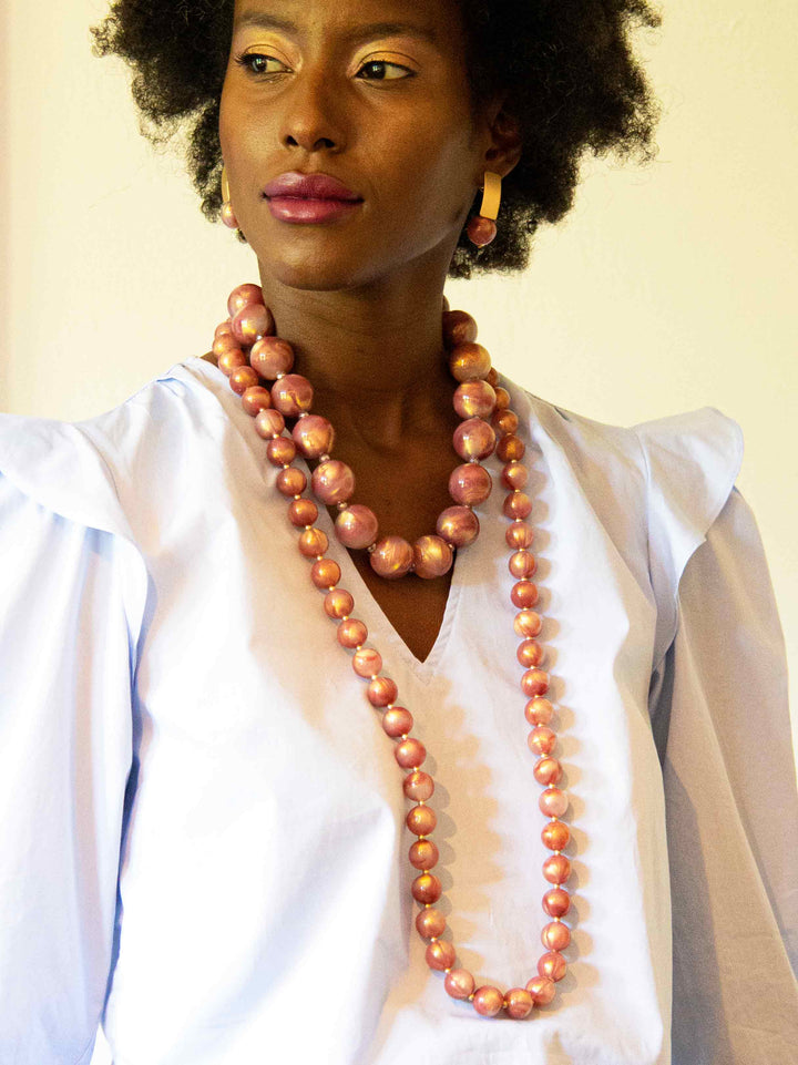 Glistening in glamour, the Iris Long Necklace is a single-strand style that can be worn layered with links or the Iris Collar Necklace.