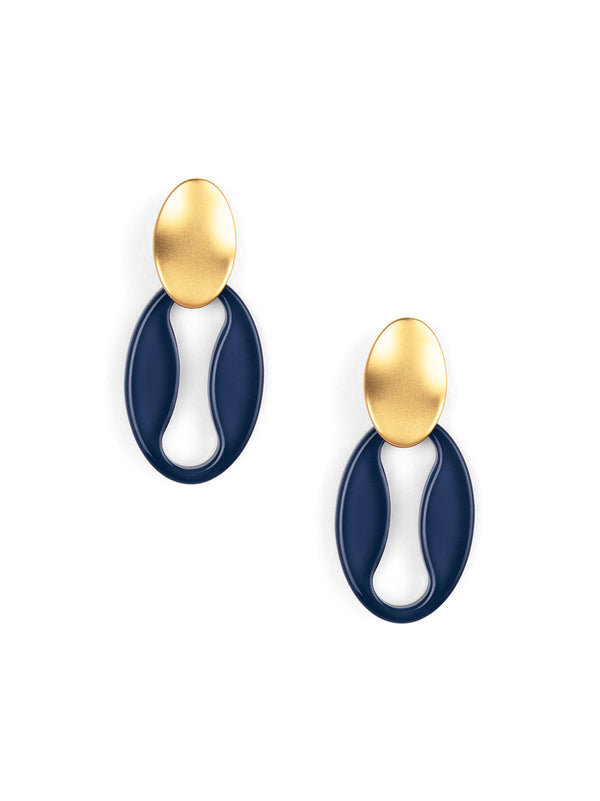 Sleek and striking, the Mira Earrings pair brushed gold ovals with sculptural cutout drops for a bold yet balanced statement. Lightweight and full of movement, they bring just the right edge to your everyday.