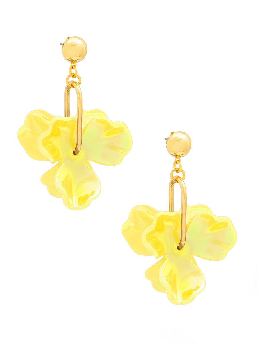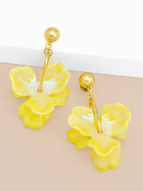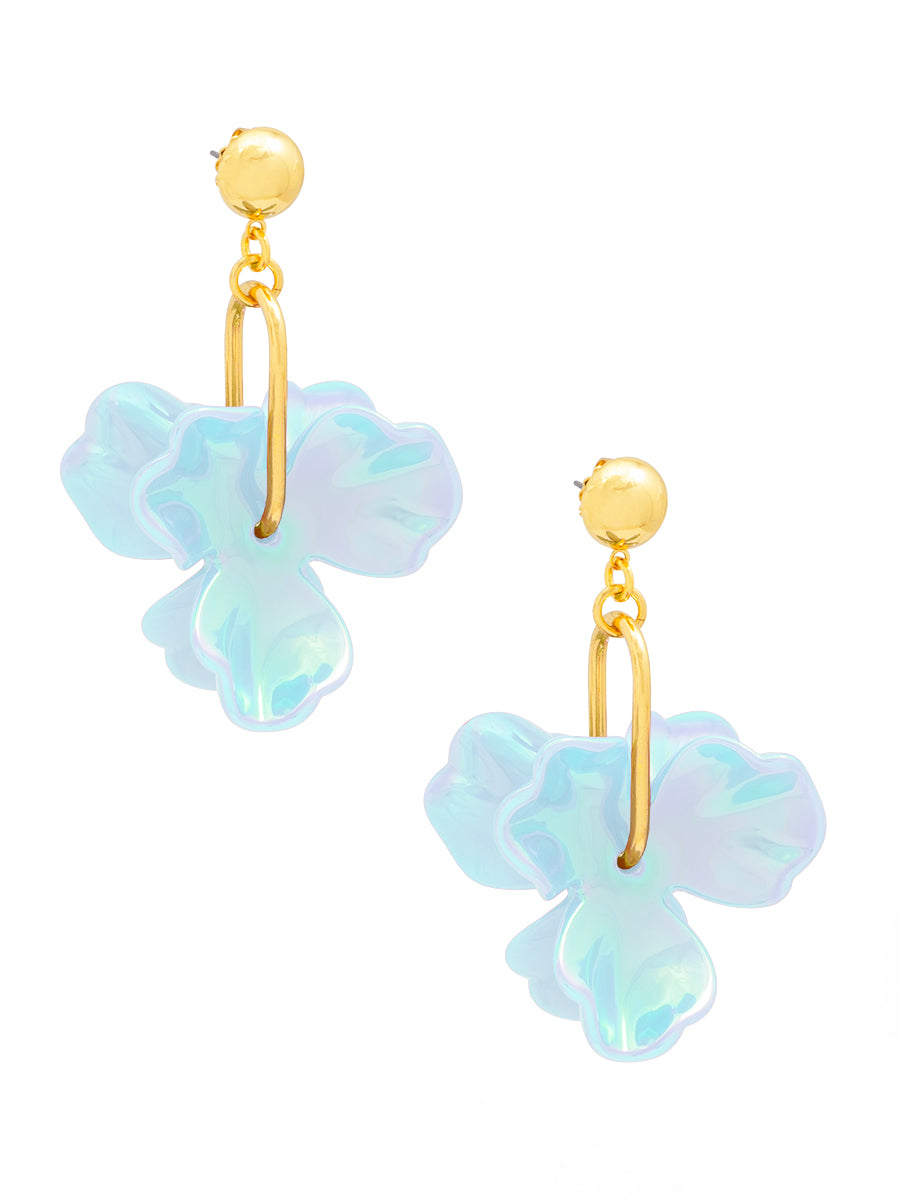 I'm in love with these Iridescent Resin 3-Petal Drop Earrings! The colors are stunning and they catch the light beautifully. I get compliments every time I wear them. They're lightweight and comfortable too. Definitely a great buy!