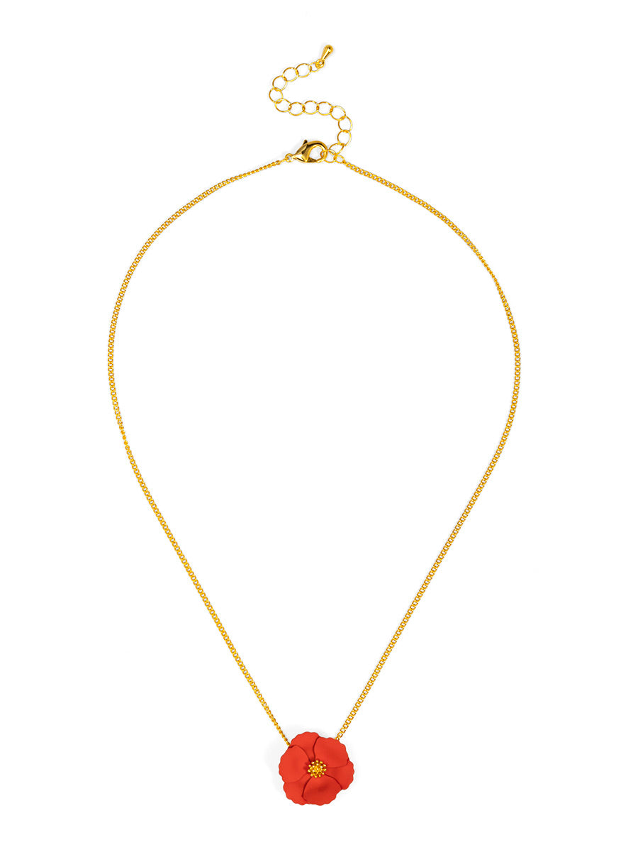 A single bloom, forever in style. The Amelia Flower Pendant Necklace showcases a matte-finish floral charm on a fine gold chain. Softly sculpted and effortlessly pretty, it brings a fresh pop of color to any look.