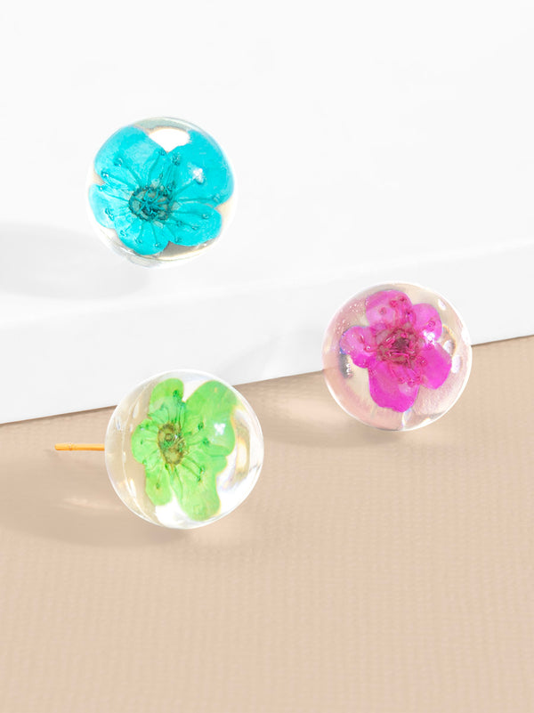 Delicate florals, perfectly suspended. The Amelia Lucite Floating Studs feature real flowers encased in clear resin domes, giving the illusion of a bloom floating mid-air. Lightweight, cheerful, and full of color, they’re a garden party in every shade.