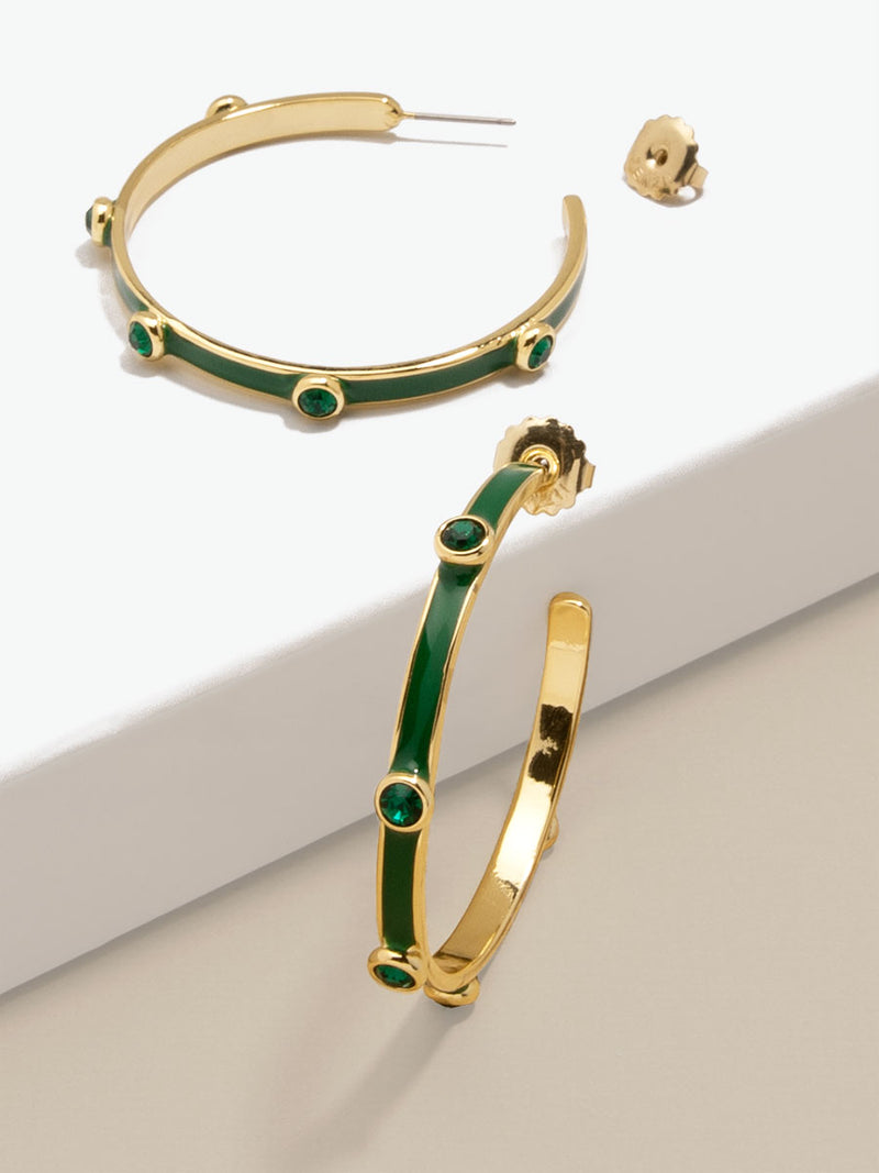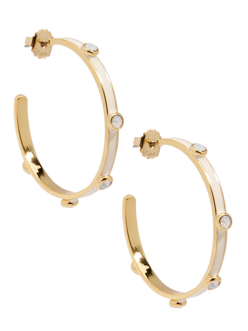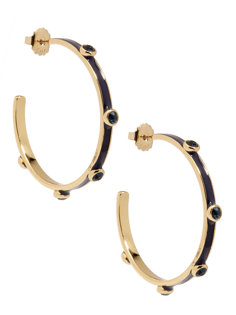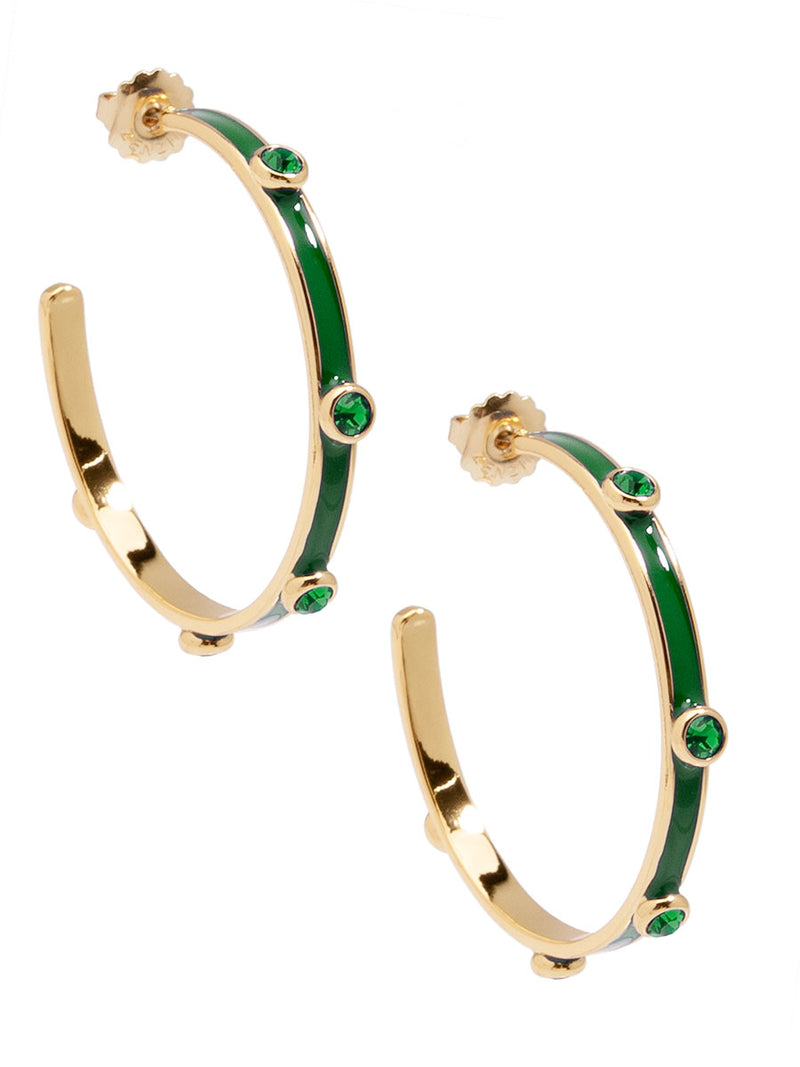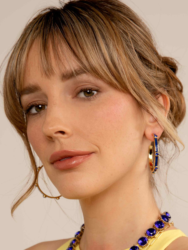 A hoop to remember! Bella features an oversized silhouette designed with colorful enamel coating and matching crystals.