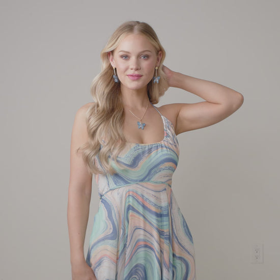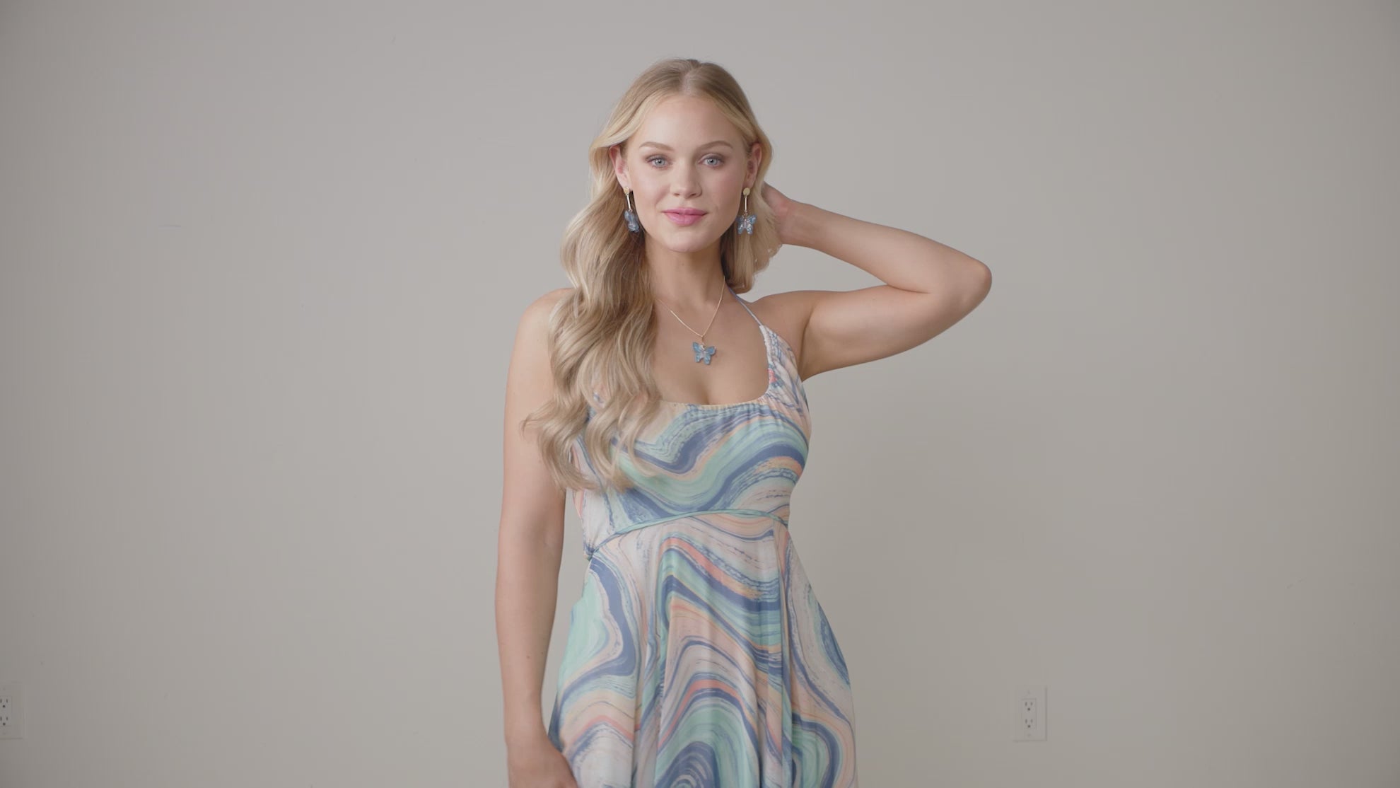 50% whimsy, 50% dreamy! Add a flutter of sparkle to your look with this iridescent butterfly charm necklace.