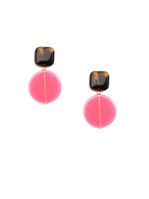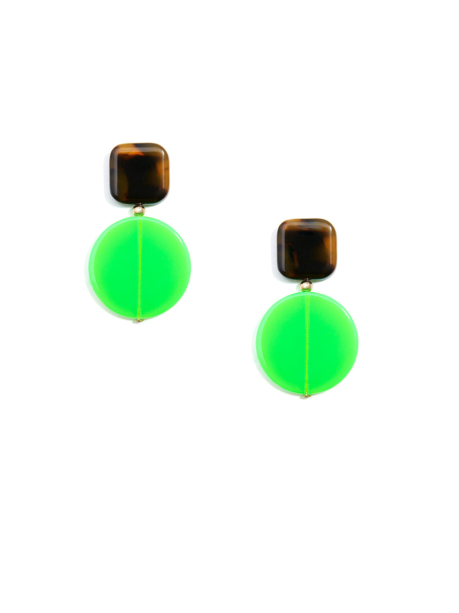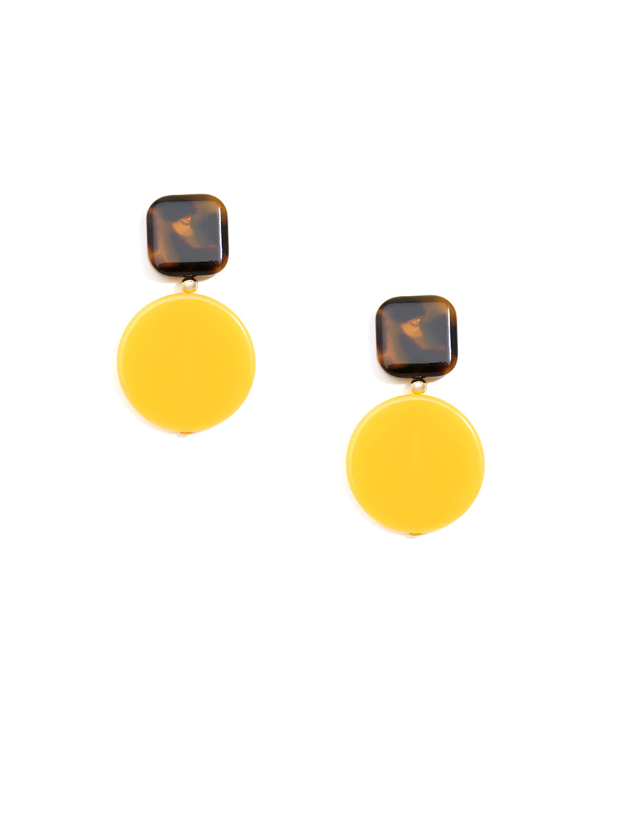 These drop earrings are a must have for a minimal chic look. This style features a square acetate post with a flat, lucite circle drop.