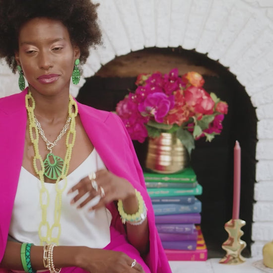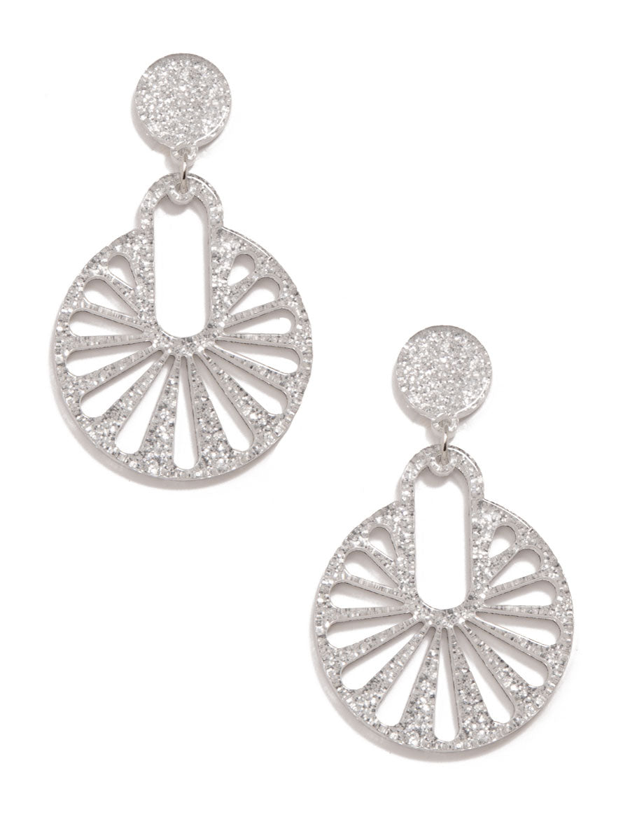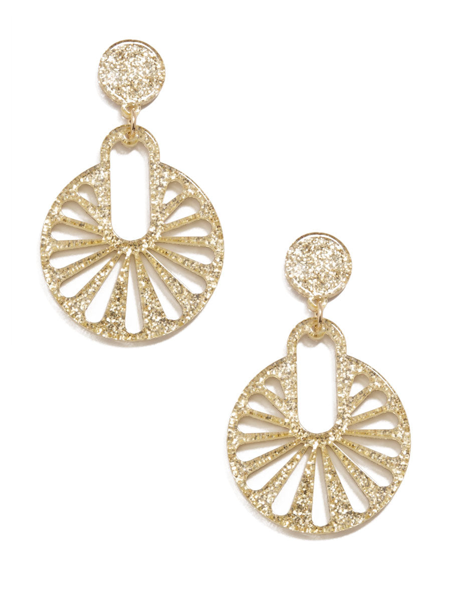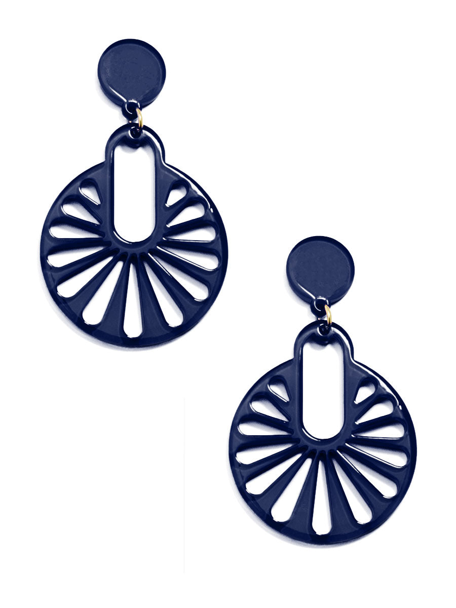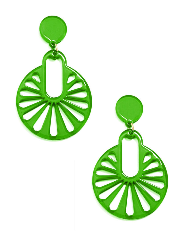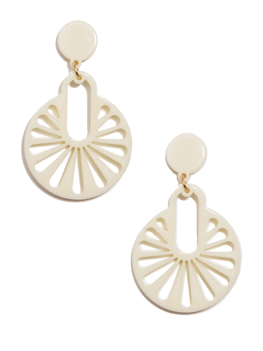 Ready for anything! These beautiful resin drop earrings feature a cutout disk design for a light, airy feel.