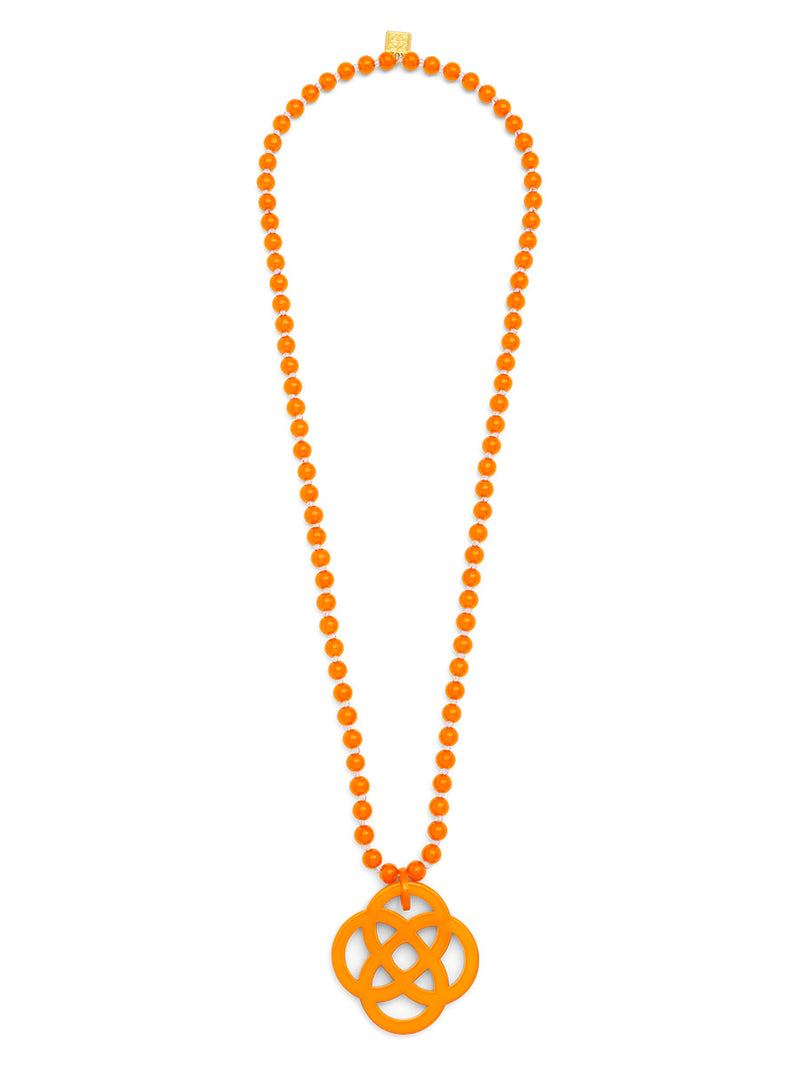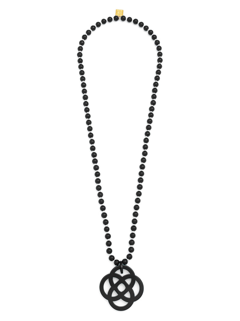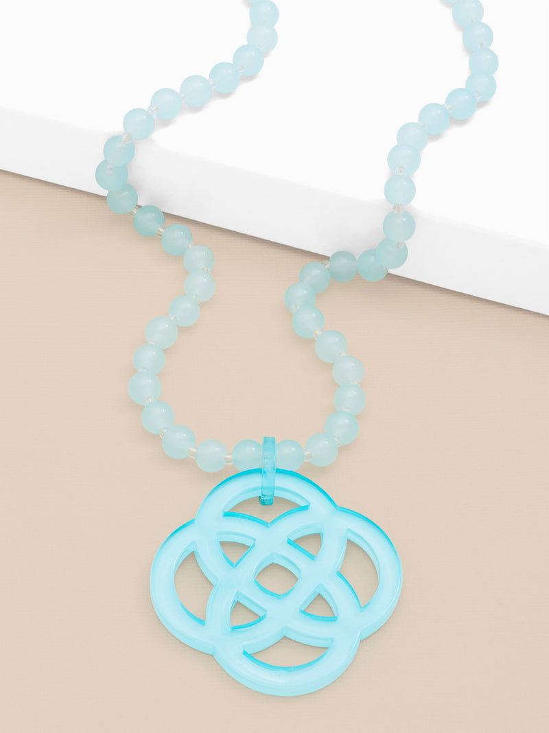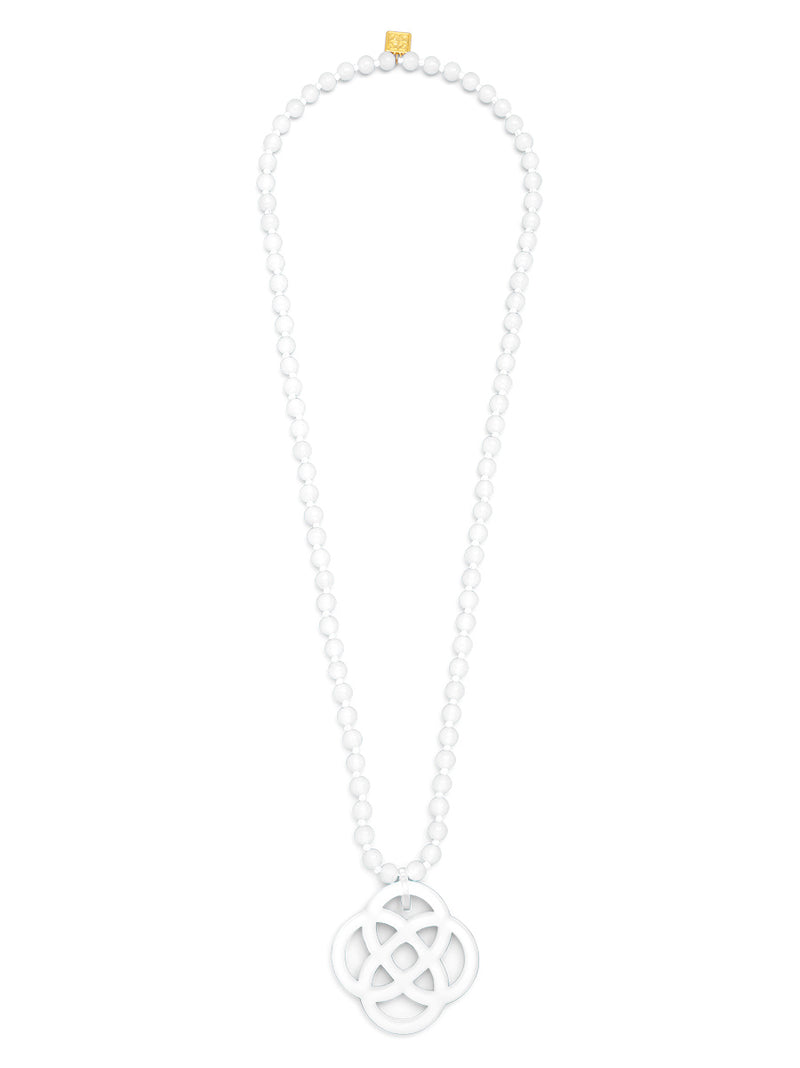 The classic quatrefoil charm should be in everyone's jewelry box. Long with glass beads, Grace styles well with a t-shirt for elevating a casual look.