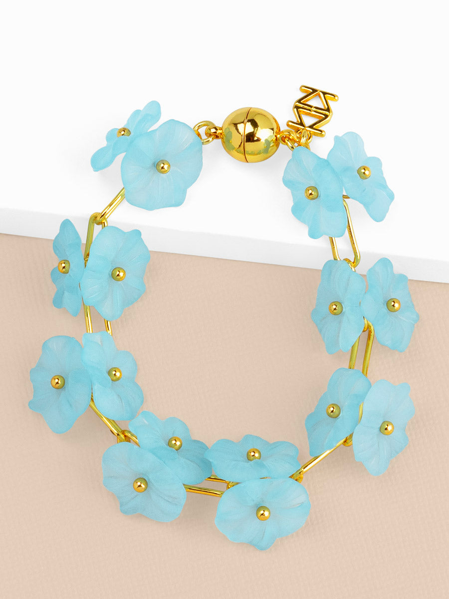 This bracelet features delicately sculpted lotus leaves, linked with gold accents for a graceful, organic look. Whether worn alone or stacked, it’s the perfect blend of tropical charm and effortless sophistication.