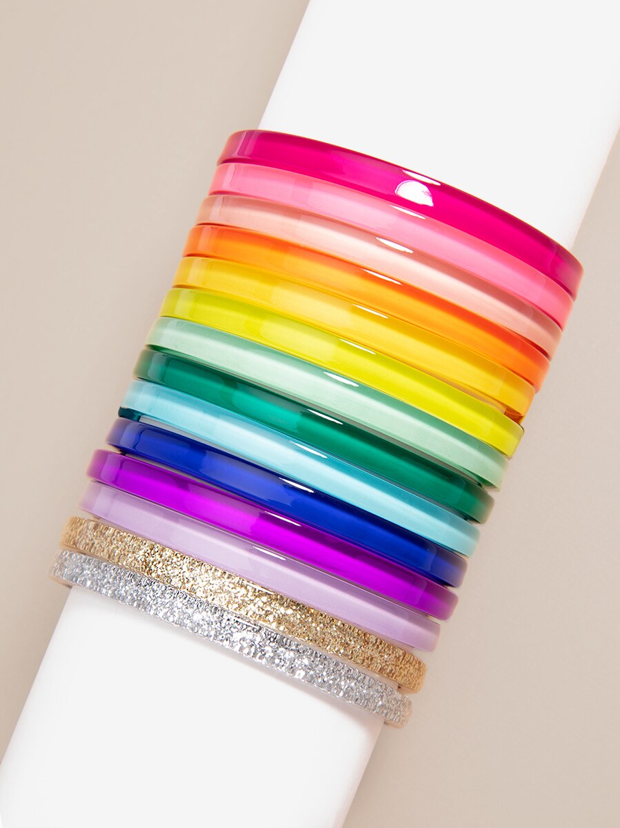 Get ready to stack! This thin, resin bracelet is perfect with a gold arm party and watch.?