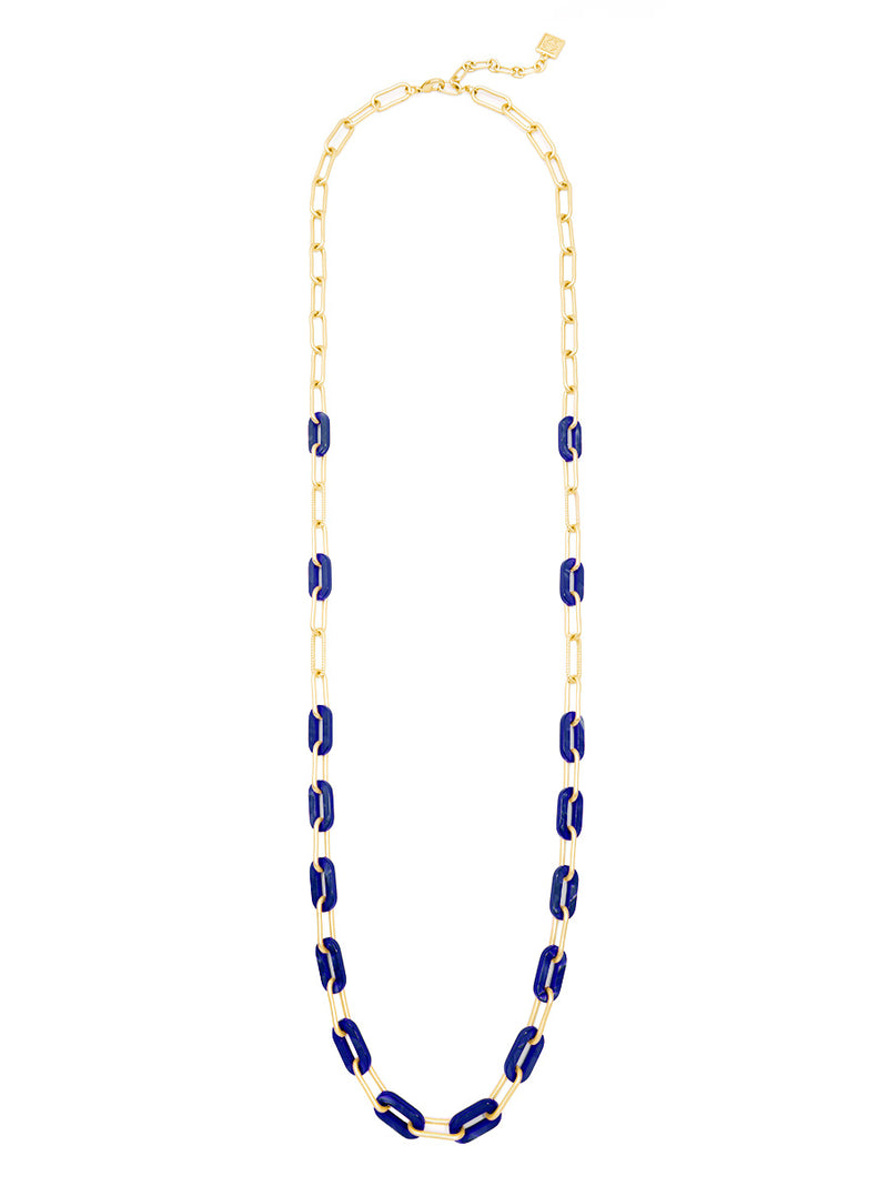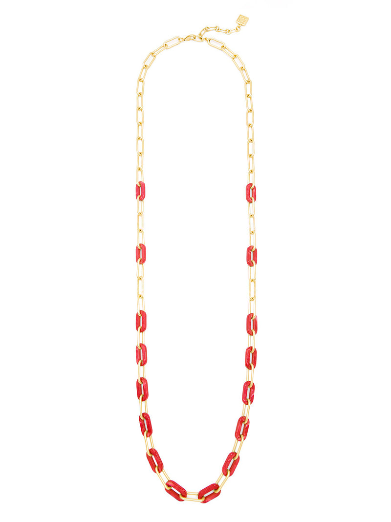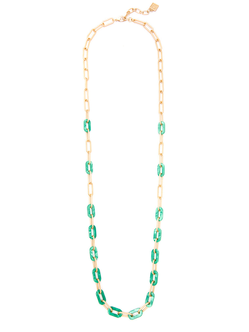 Why should you have to choose between showcasing your love of color and your love of links? You don't any more! This mixed media necklace features marbled resin and 18K gold-plated paperclip links and is finished with a lobster claw closure. Pair with other matte or shiny link necklaces for a flawless layered look.