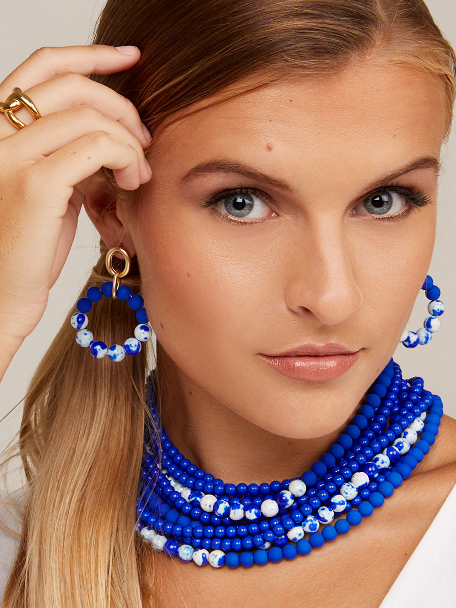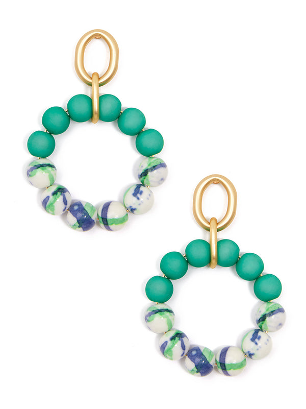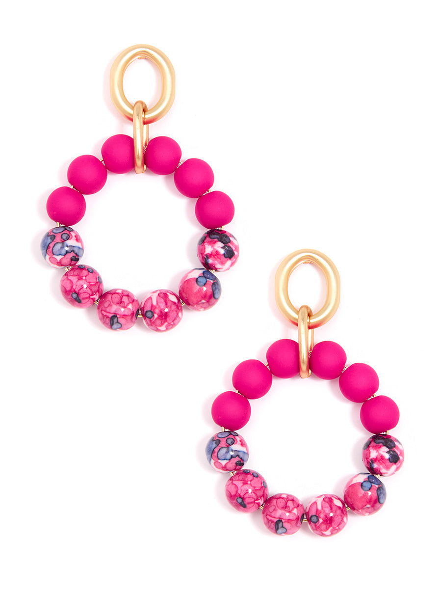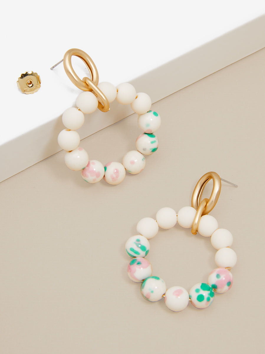 This chic, marbled drop earring is the perfect summer drop earring. Composed of matte and glossy resin beads, this style is accented with luxurious, gold-tone links.
