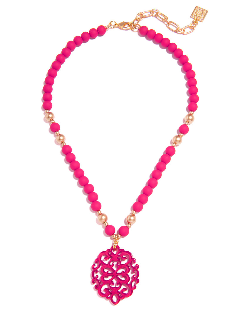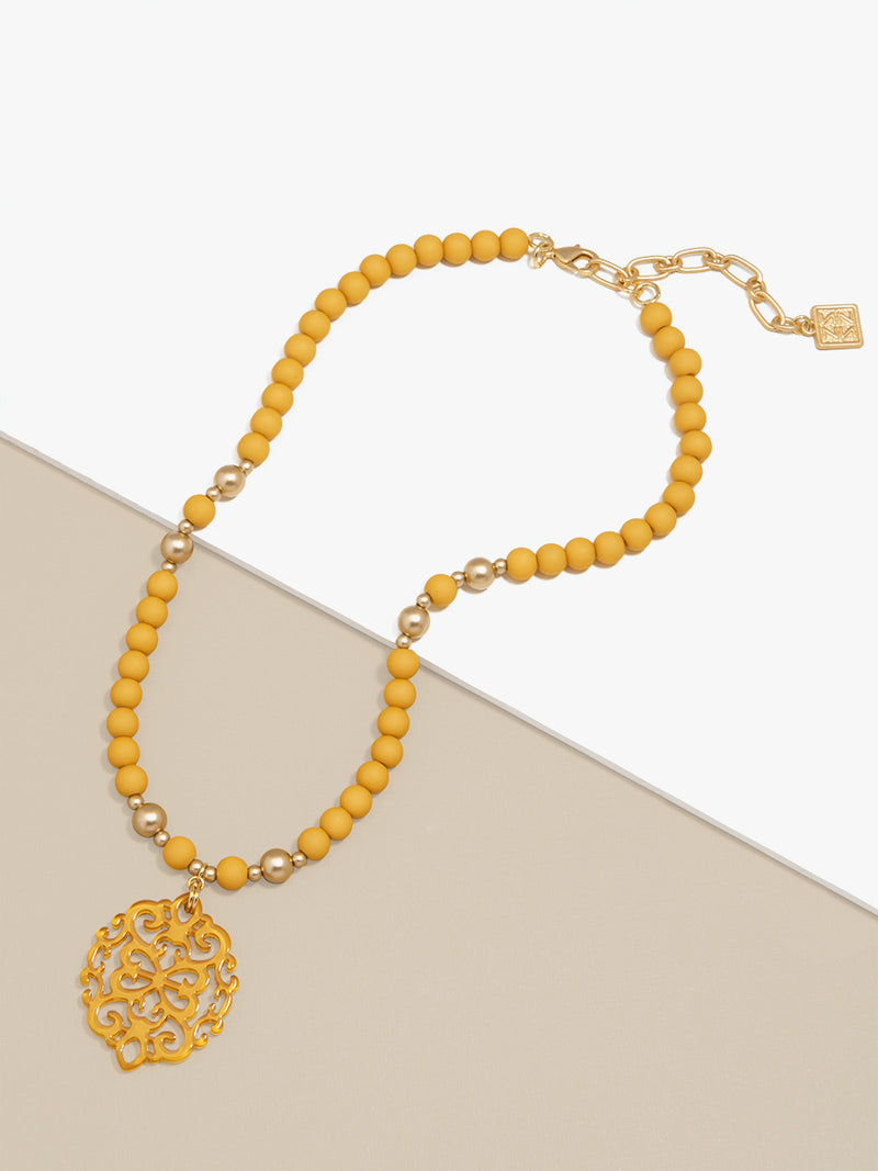 Designed with matte beads and a signature pendant silhouette, this modern and feminine necklace adds an element of charm and allure to your look.