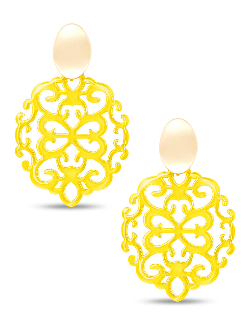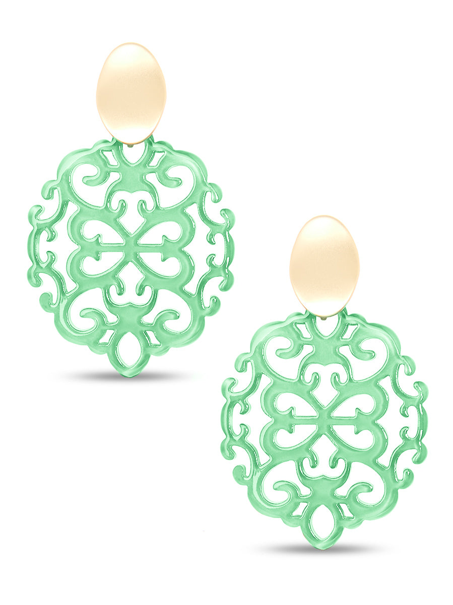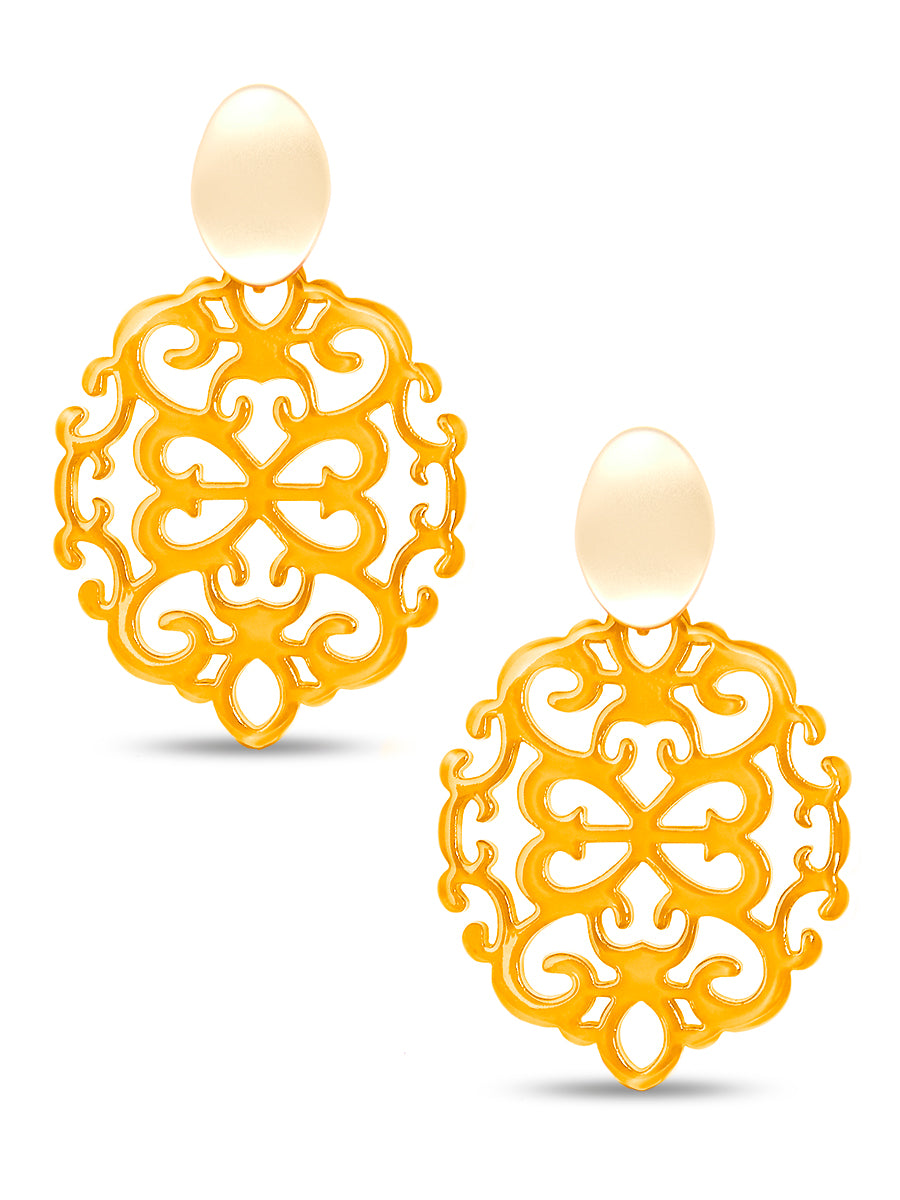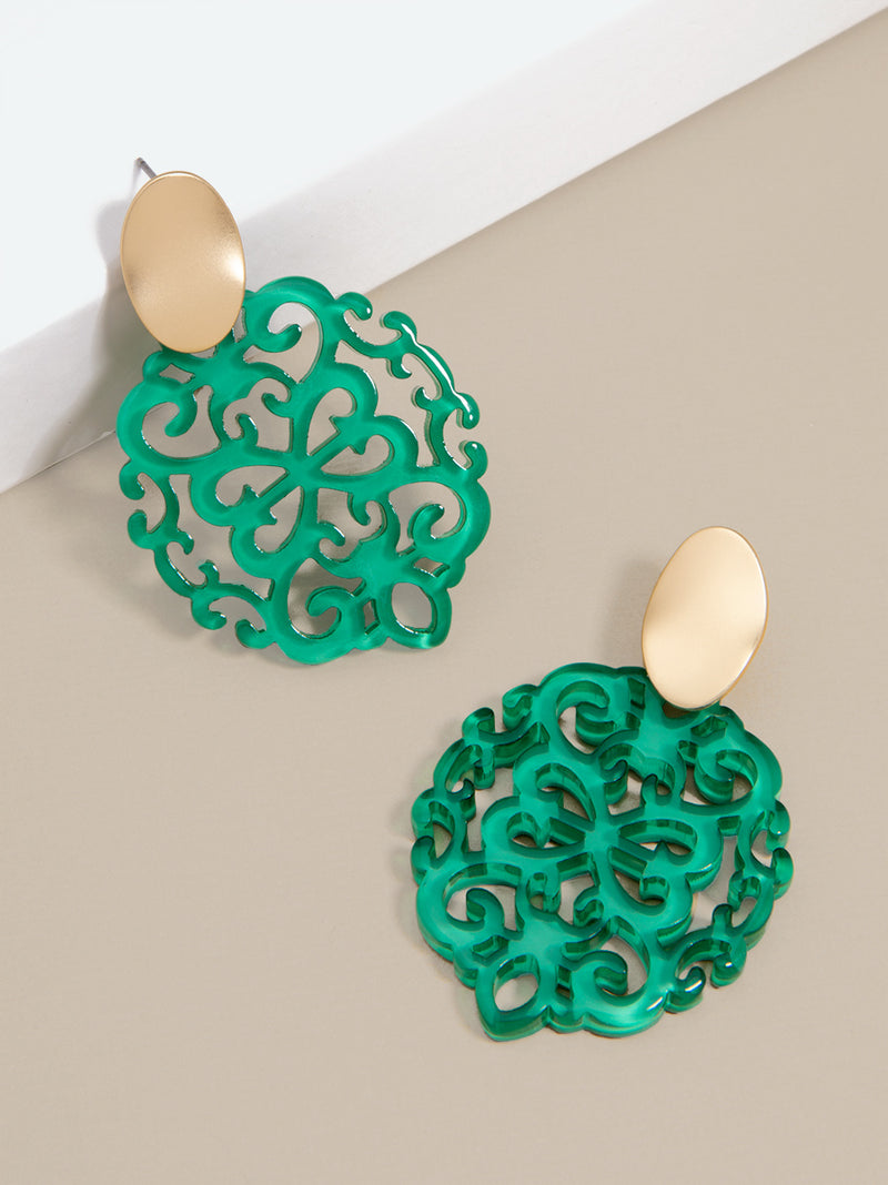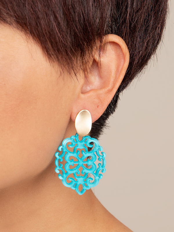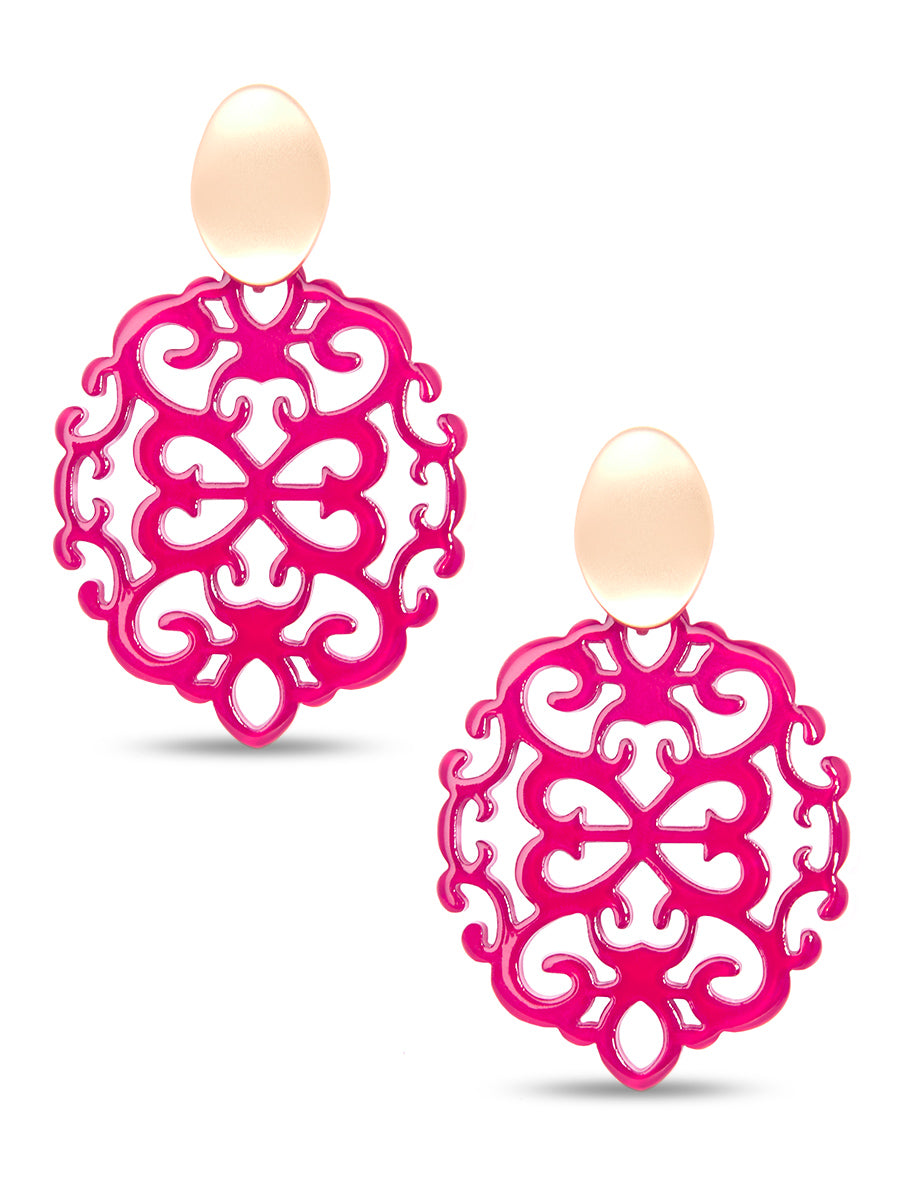 Modern and feminine, these Damask pendant earrings add charm and allure to your look.