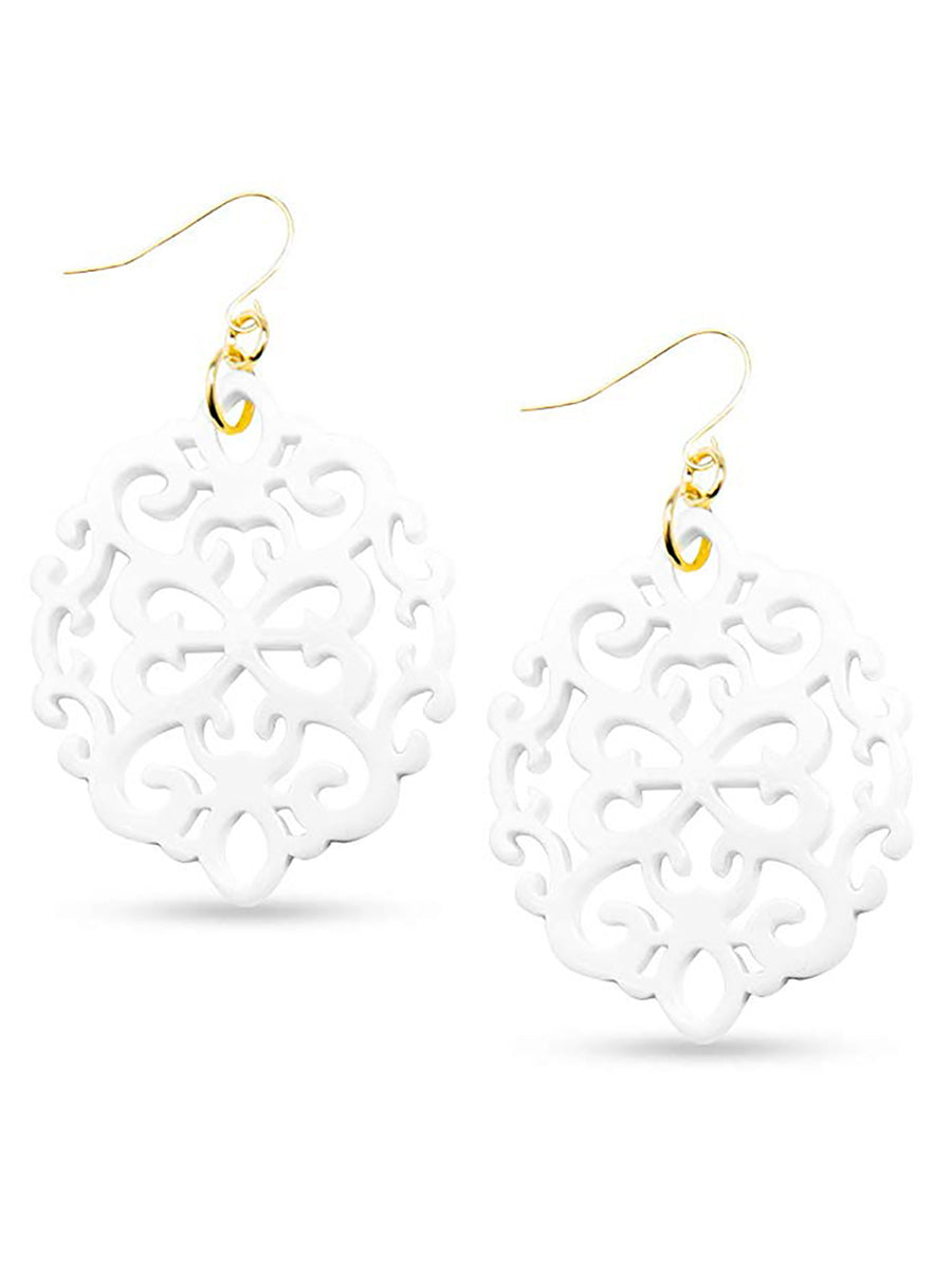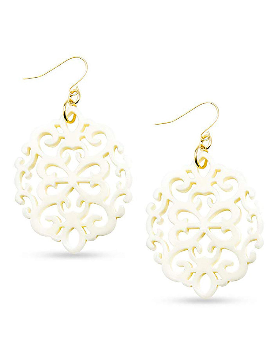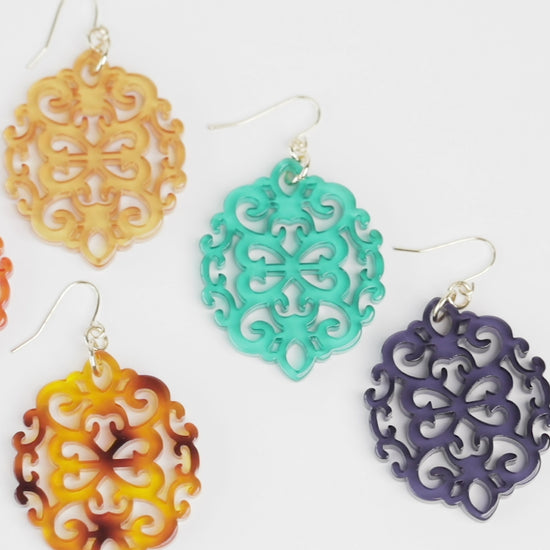 Elegantly crafted drop earrings, a symphony of curves in resin, embody fluid movement and timeless elegance. These statement pieces, made from hypoallergenic base metal and resin, offer a bold yet refined style. Light and durable, they are perfect for those seeking a sophisticated accessory that enhances any look. Experience the joy of the journey with these hypoallergenic, lightweight earrings, a celebration of life's fluid beauty.