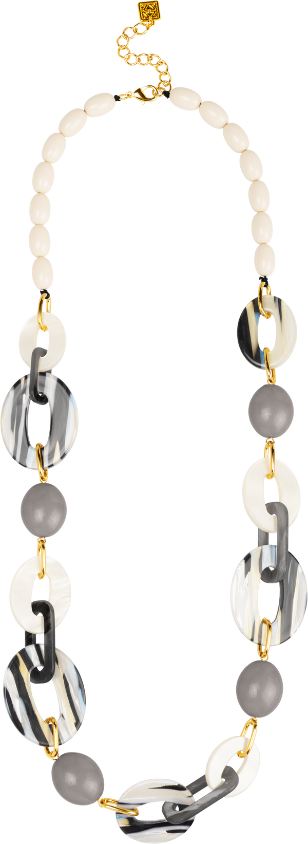 Resin and bead links in organic shapes and earthy tones. Lightweight and easy to layer.