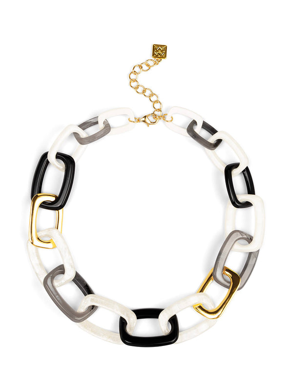 Oversized resin links with a smooth, polished finish. A bold take on a classic link chain.