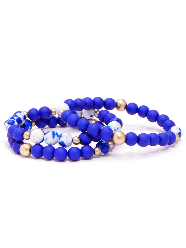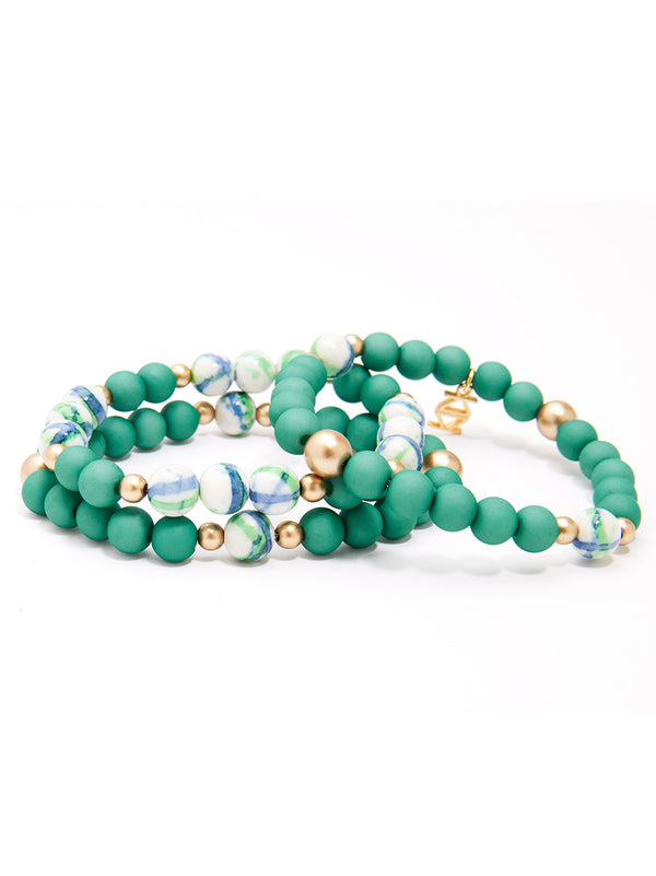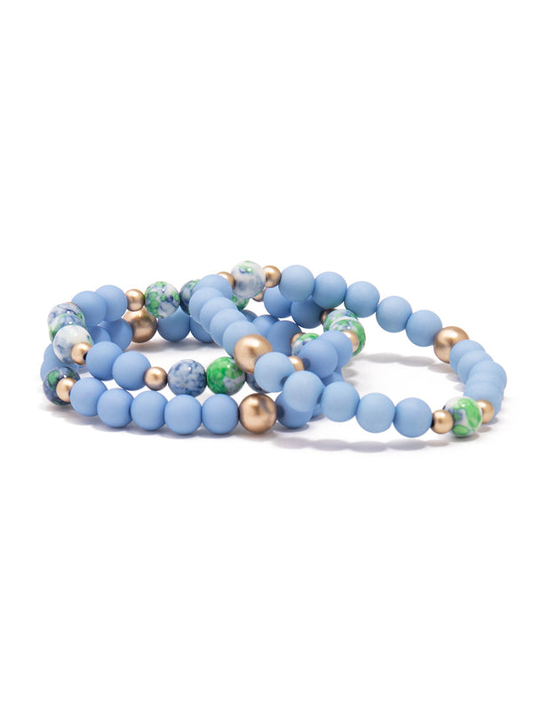 Bracelet sets making stacking as easy as 1, 2, 3. Pair with the Nora Small Beaded Hoop Earring or Nora Medallion Charm Bracelet.
