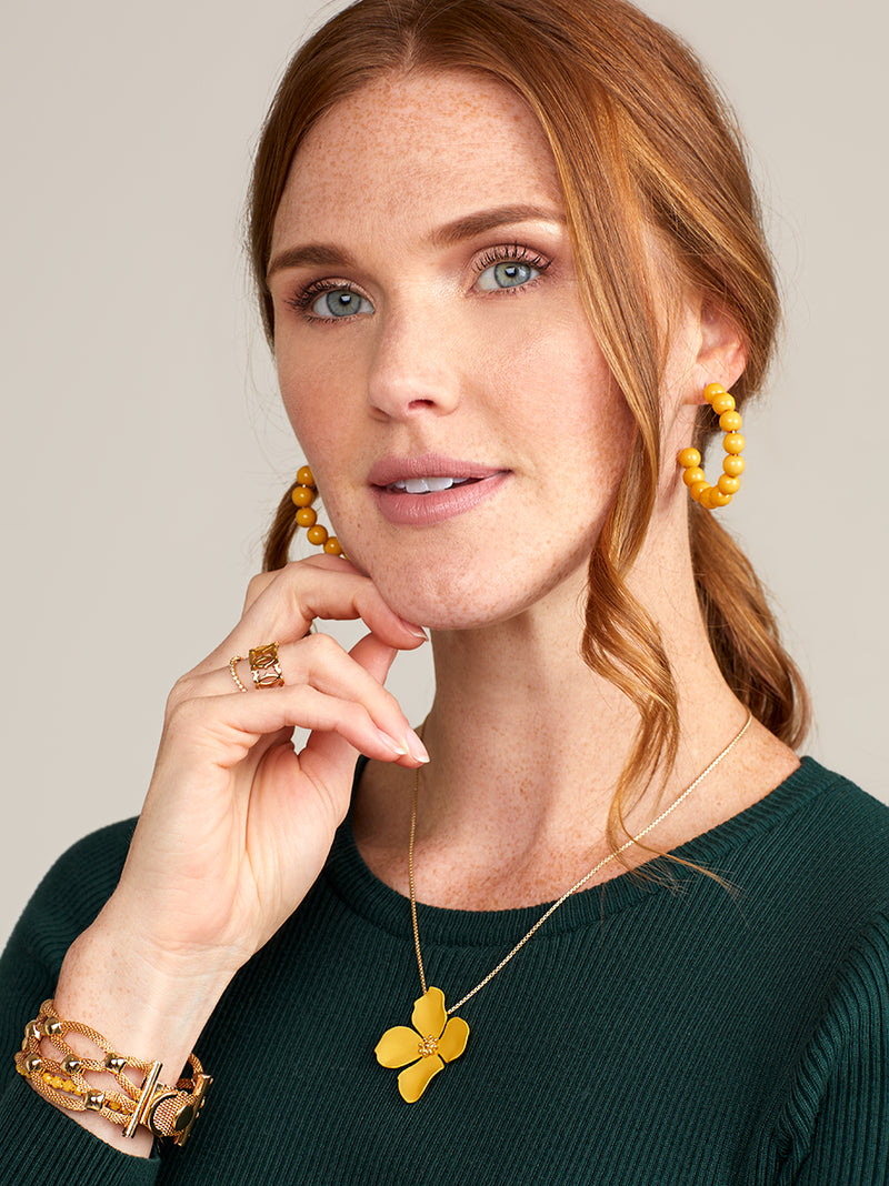 Sophisticated and striking, this chain collar necklace features hand-painted petals and gold-tone accents, creating the perfect party-host or party-goer vibe.