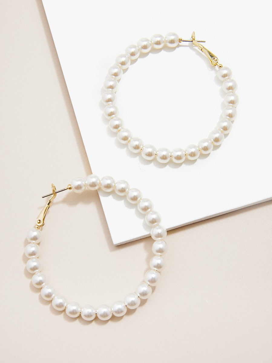 Elegant yet flirty, these pearl hoops are a versatile basic. They're great for the office and black tie worthy as well!
