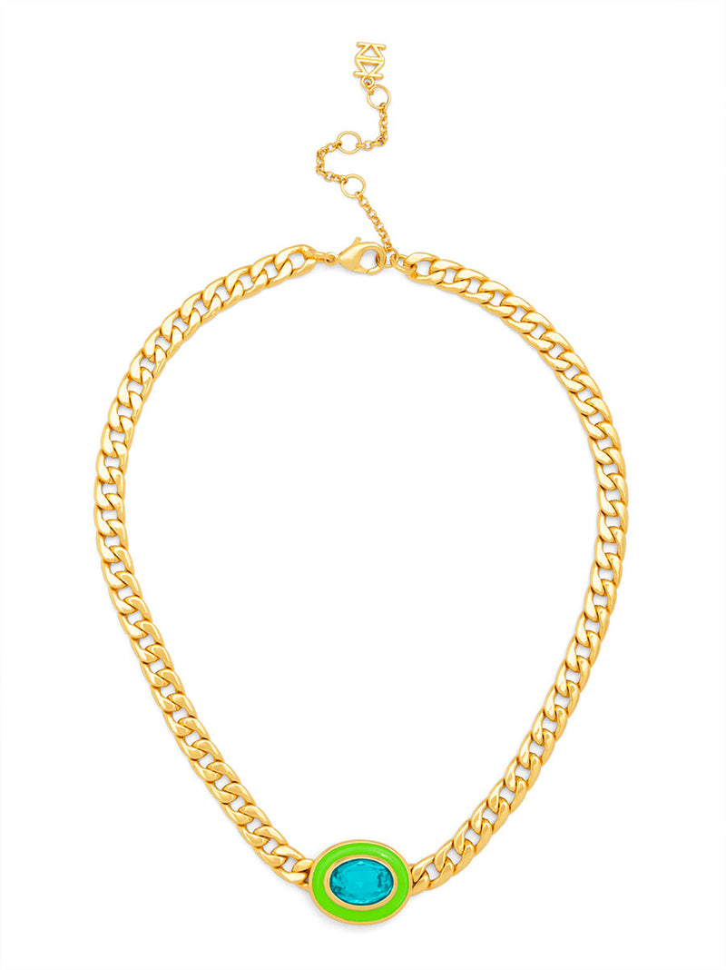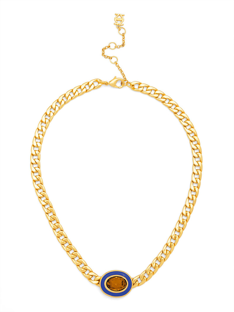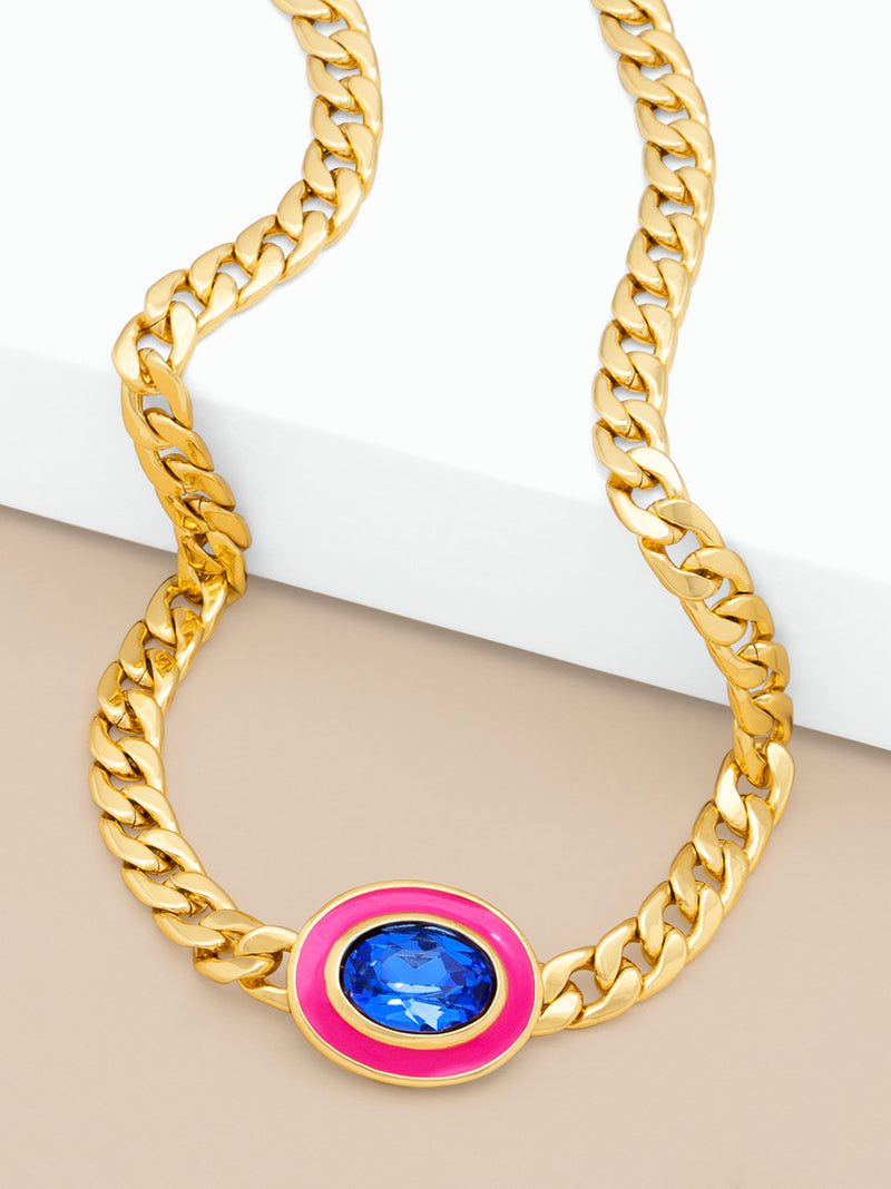 Seraphina marries elegance and adventure. Featuring a radiant crystal charm on a collar chain for glamour on-the-go.