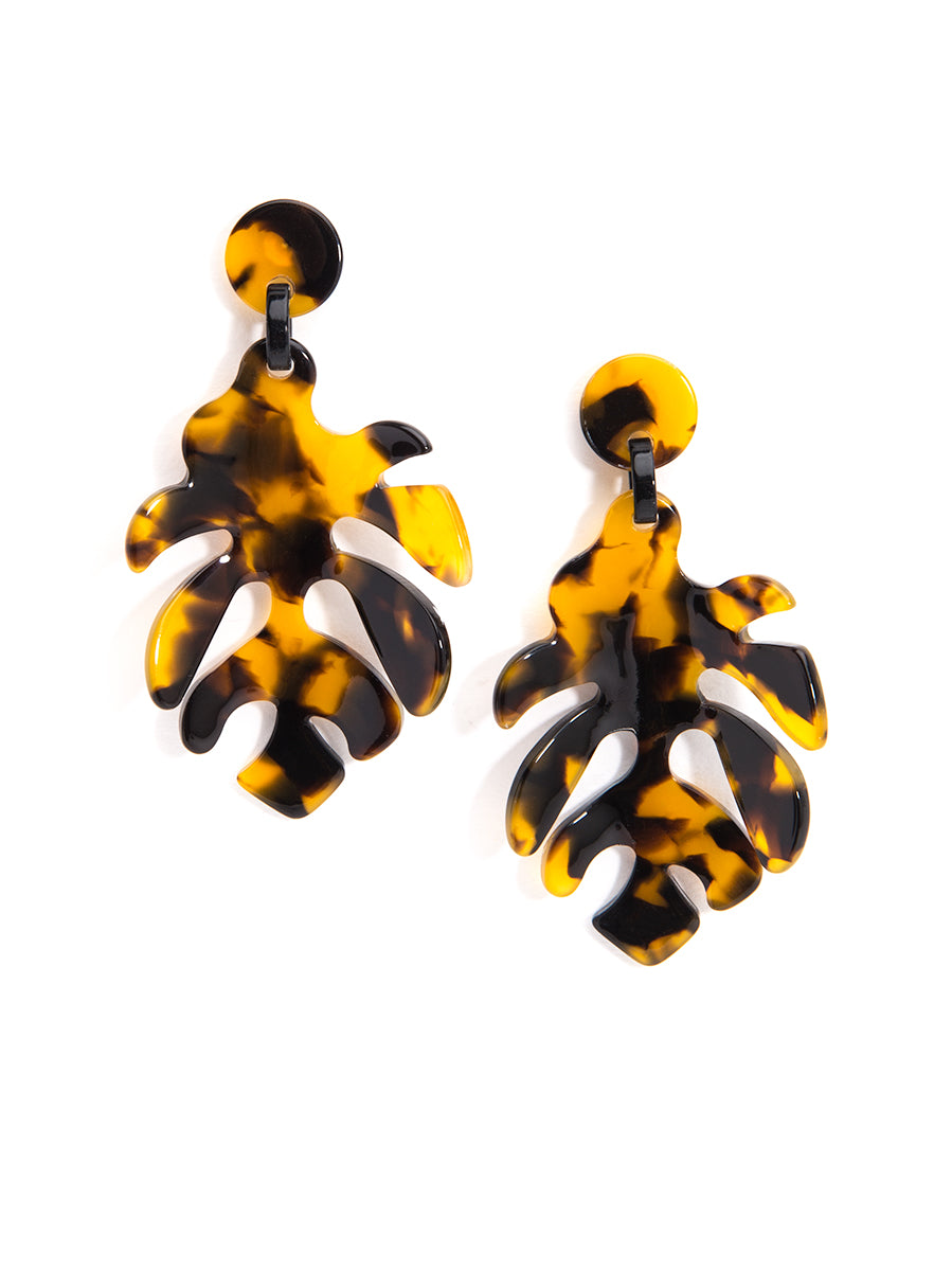 Add some tropical vibes to your look with these fun resin earrings. This lightweight pair features a palm tree leaf design in classic and new tortoise print colorways.