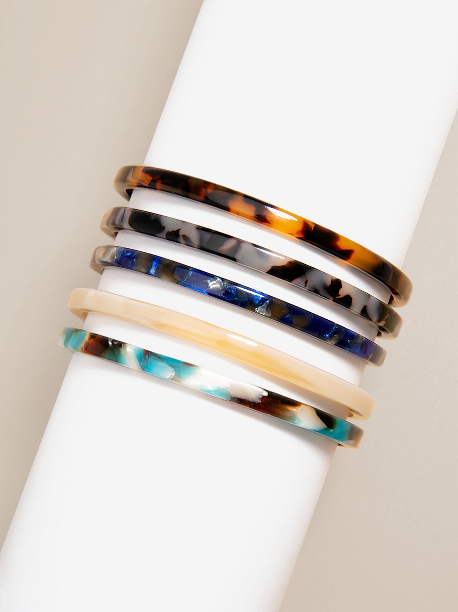 Perfect for stacking with matching prints or solid colors! These thin torti-print bracelets are available in classic tortoise colors as well as pastels.