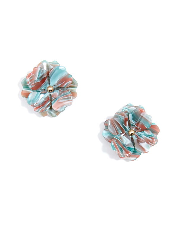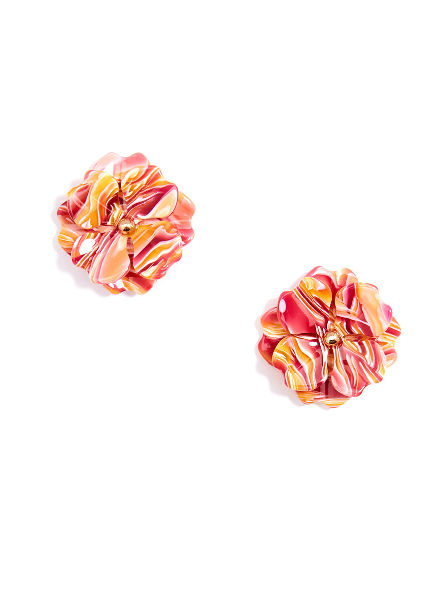 This stunning flower earring is a beautiful way to add texture to your look! This style features a layered resin flower, available in a variety of colors.