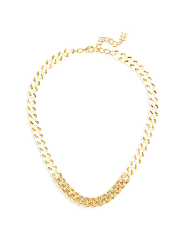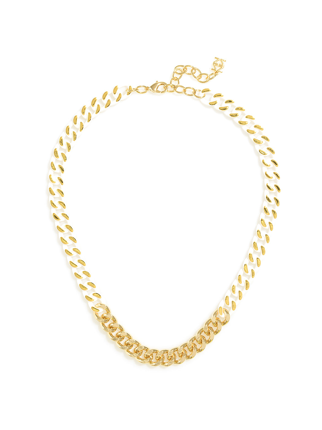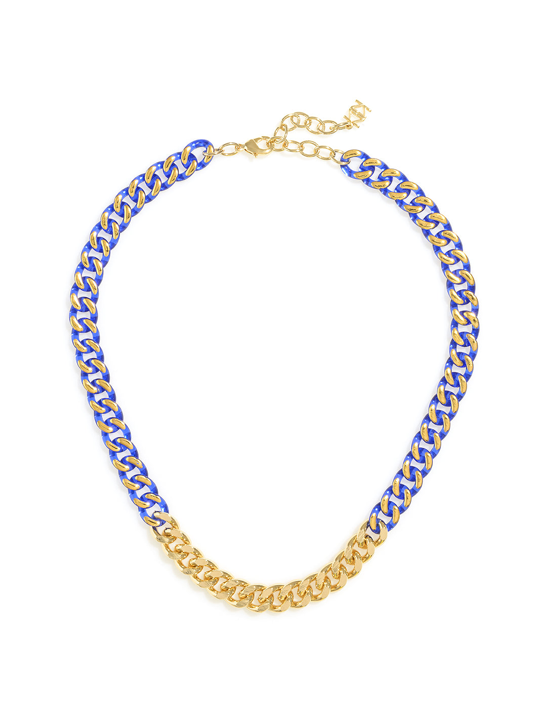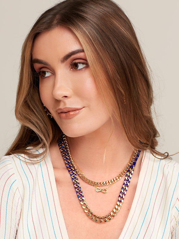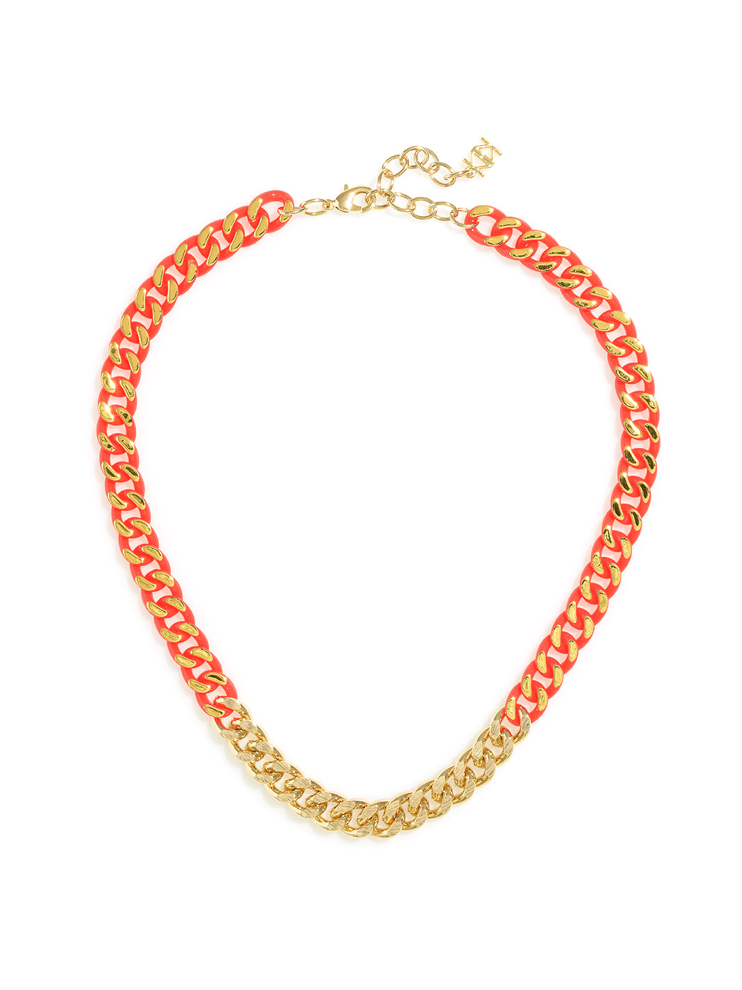 Rock the chain trend without compromising on bold pops of color. This style is composed of gold-tone links partially coated with colorful paint.