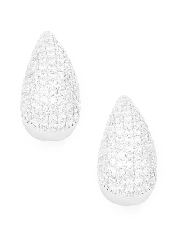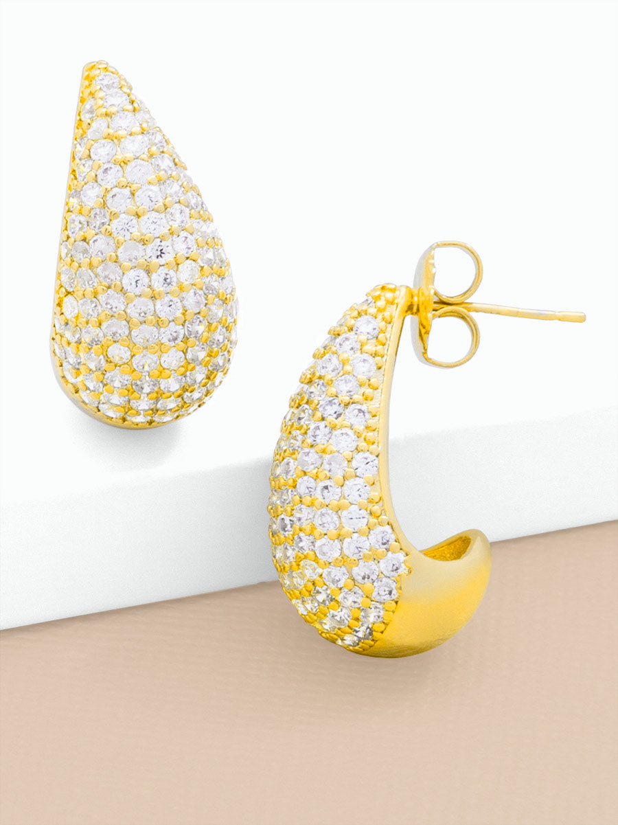Elevate your ensemble with the celestial charm of 18K gold-plated crescent studs, adorned with shimmering pav?et crystals.
